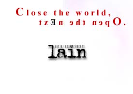 One night in October of 1998, the author was relaxing in a room at the Westin Osaka after a day of traveling around Kyoto visiting various temples. It had been raining out, which lent the color of Osaka's night lighting a peculiar aspect of clarity as the water on the roadways reflected the lights. Next to the hotel is the impressive Umeda Sky Building, a pair of 170 meter tall towers connected by a wide span at the top. The light show that played out from this span was constantly shifting, looking very like something from Close Encounters of the Third Kind. The interesting point to note is that the building itself was not in the field of view from the room's window, but the reflections of the lights on everything in the area was easily visible. The hotel room itself was done in an ultramodern and very elegant black marble and gold trim motif. With the giant bay window looking out over the cityscape of distant reflections, one could not help feel just a little like the subject of a Syd Mead painting. It was about 1:30 in the morning, and the television started showing one of the late-night anime programs. The show's title was Serial Experiments Lain, and right away one could tell that this was not born from any of the ordinary anime plot structures. (It is, in fact, the anime realization of a video game for the Sony Playstation.) On the surface, the show appears to describe the efforts of a junior high school girl Iwakura Lain as she gains an interest in the online lifestyle, but ultimately what the show reveals goes well beyond such superficial themes as online activities and the habits and desires of a schoolgirl.