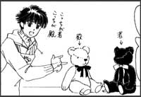 Just how far will Hina and Asou-sensei's relationship go? Given their age differences it would seem not far, but considering CLAMP's previous habit of including some sort of student-teacher relationship in their stories, (see Card Captor Sakura) you never can tell. Suki, Dakara Suki runs in Asuka Mystery DX, a monthly comic magazine featuring stories with magical and/or mysterious plot elements. Because it runs in this monthly, it makes me wonder if some sort of serious or magical plot twist will be coming. Already there has been some groundwork for a mystery developing- namely the impression that Asou-sensei is not normally a teacher at all. His dealings with Tomoaki are very suspicious. Asou-sensei's interest in Hina may not be based on mere friendship after all...