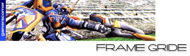 I'm a big Armored Core freak. Take a look at my rating systems. Those are little Cores. So, needless to say, I was pretty psyched to find out that From Software would be developing a mech combat game for the Dreamcast. So, what exactly is Frame Gride? Think Escaflowne-meets-Armored Core.