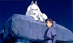 San, the Princess Mononoke, is the adopted human child of the Wolf God, Moro. She has been raised by the wolves and hates humans for their destruction of the forests. She has sworn to defend the forest and kill Lady Eboshi, even if she dies trying. A high spirited, feisty and energetic girl, she is also the object of affection of Ashitaka. |