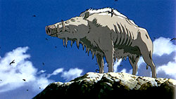 A Guardian God of the forest to the West. Nago is shot by Lady Eboshi and turns into a demon-monster, killing everything in his path. The demon attacks the Emishi village and is stopped by Ashitaka. Nago is the cause of Ashitaka's curse. |