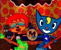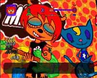 The repeated gameplay of Parappa was minimal at best as once you finished the levels in the game that was it. Um Jammer Lammy kicks Parappa to the curb with even more gameplay as once the player completes a level they can team up with Rammy, Lammy's rival. Rammy, a black and white version of Lammy, has a different guitar-playing style, but definitely rocks as well as Lammy if given the chance. Another player or the computer can control Rammy. Using the computer to your advantage can help you get through tough levels where Lammy cannot do it solo. If that wasn't enough, once the player finishes up all seven levels of the game, he can battle head-to-head with either Rammy or Parappa himself! Parappa also has his own game with different arrangements to the Lammy Level songs, which is quite cool! It's like two games in one. Parappa the Rapper 2 and Um Jammer Lammy. The player can team up with Parappa or battle against him, rapping against guitar, who will win?