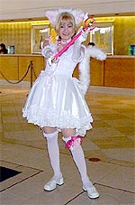 And not only cosplayers. You can also look down on occasion to see the likes of Ishiguro-sensei of Macross TV fame talking with fans or Fushigi Yuugi manga artist Watase Yuu videotaping the happenings of the day. Upstairs you can hear the rhythmic pounding of the Bemani video games running non-stop as congers compete to show their skill at the likes of Dance Dance Revolution.