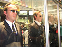 After that it was to another line, this time at Ubisoft’s booth for Splinter Cell 3. SC3 was probably one of the most impressive games I saw at the show. The improvements they’ve made to the game are almost staggering, considering it’s been less then 6 months since SC2 came out. The thing that stood out most were the 2 player co-op missions. The most impressive thing about it were the tandem moves you could execute with the other player. Things like giving the player a boost over a wall, or holding/pulling one player up the side of a building with a rope. It was really cool what stuff they built into the co-op mode.