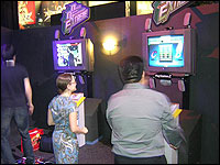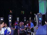 After walking around Konami’s booth a little, I headed back to Nintendo’s booth and stood in line for the Nintendo DS demonstration. The demo began with them first showing us a video of what some game developers thought of the DS, and then they allowed a few people from the large group to actually play the DS. I was one of the lucky few. I have to say that I was really impressed with the system, especially with the Metroid game. They had a 4 player wireless multiplayer game of Metroid going. It took a little time to get used to shooting and looking with the touch screen, but once you do it’s a lot of fun. The other game I played was one of the tech demos they had where you have to draw clouds to navigate baby Mario as he falls to the ground. That was also really enjoyable, and I hope that Nintendo releases it at some point, even though it’s just a tech demo.