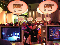 I then headed over to Microsoft’s booth, which looked more like a futuristic fort then a booth. I watched some people play Doom 3, it looked all right on Xbox, but it didn’t seem that great to play. It seems like its just eye candy. Basically you enter a room and there are a couple zombies or other evil things in the room and they come at you and you shoot them. It hasn’t really evolved since the first Doom game, except that the graphics are better.